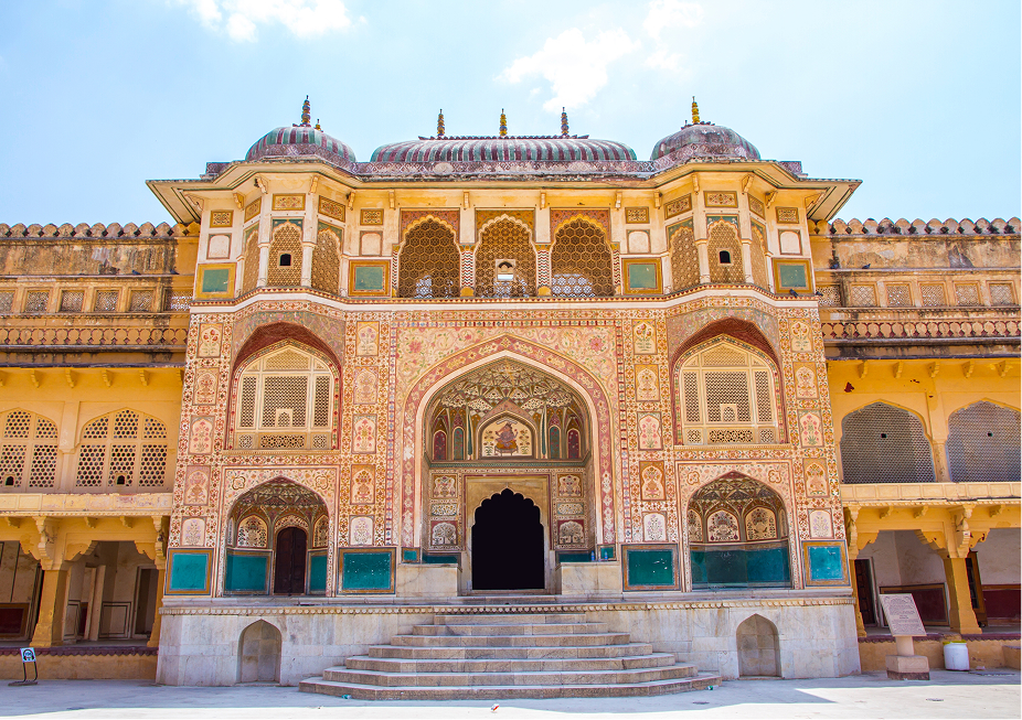 This morning, you fly to Jaipur, the flamboyant capital of Rajasthan, painted in shades of pink and filled with echoes of royalty. Upon arrival, check into your heritage palace stay, where hand-painted walls, courtyards, and quiet fountains welcome you into a world of old-world grace.